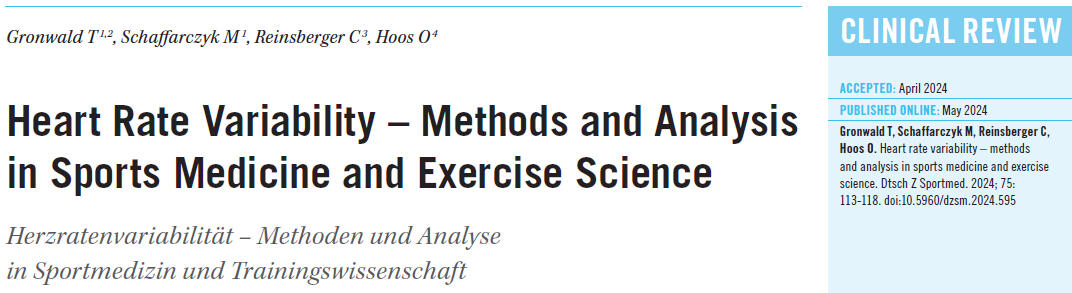 • Schaffarczyk, M., Rogers, B., Reer, R., & Gronwald, T. (2022). Fractal correlation properties of HRV as a noninvasive biomarker to assess the physiological status of triathletes during simulated warm-up sessions at low exercise intensity: A pilot study. BMC Sports Science, Medicine and Rehabilitation, 14(1), 210. https://doi.org/10.1186/s13102-022-00596-x