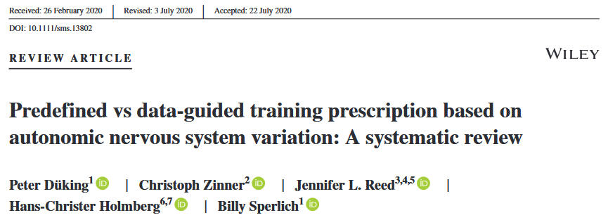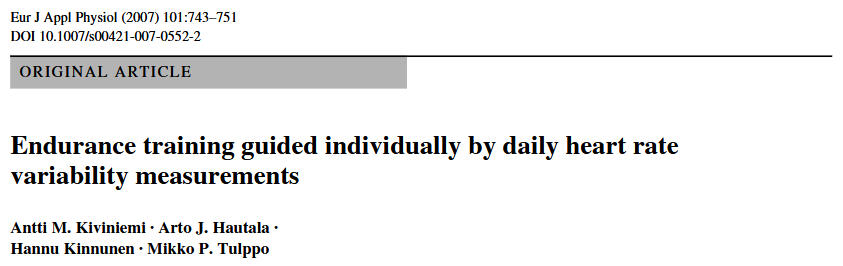 • Vesterinen, V., Nummela, A., Heikura, I., Laine, T., Hynynen, E., Botella, J., & Häkkinen, K. (2016). Individual Endurance Training Prescription with Heart Rate Variability. Medicine & Science in Sports & Exercise, 48(7), 1347–1354. https://doi.org/10.1249/mss.0000000000000910