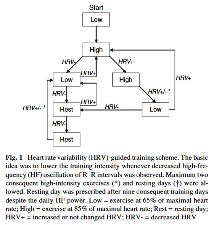 • Plews, D. J., Laursen, P. B., Stanley, J., Kilding, A. E., & Buchheit, M. (2013). Training adaptation and heart rate variability in elite endurance athletes: opening the door to effective monitoring. Sports medicine (Auckland, N.Z.), 43(9), 773–781. https://doi.org/10.1007/s40279-013-0071-8