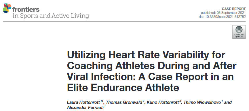 • Schneider, C., Wiewelhove, T., Raeder, C., Flatt, A. A., Hoos, O., Hottenrott, L., Schumbera, O., Kellmann, M., Meyer, T., Pfeiffer, M., & Ferrauti, A. (2019). Heart Rate Variability Monitoring During Strength and High-Intensity Interval Training Overload Microcycles. Frontiers in Physiology, 10. https://doi.org/10.3389/fphys.2019.00582